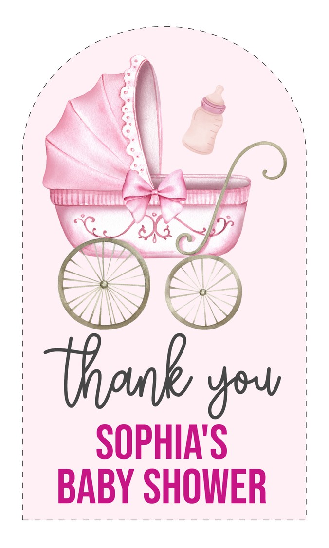 Celebrate your little girl’s arrival in style with these pink Stroller baby shower thank